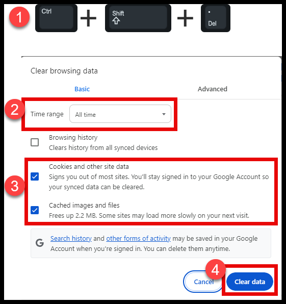 - Open Chrome and while inside the Chrome window press CONTROL + SHIFT + DELETE on the keyboard.